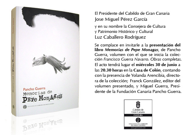 El próximo miércoles 30 de junio a las 20,30 horas en la CASA de COLÓN, se presenta la REEDICIÓN de las "Memorias de Pepe Monagas" de Pancho Guerra (Francisco Guerra Navarro)
