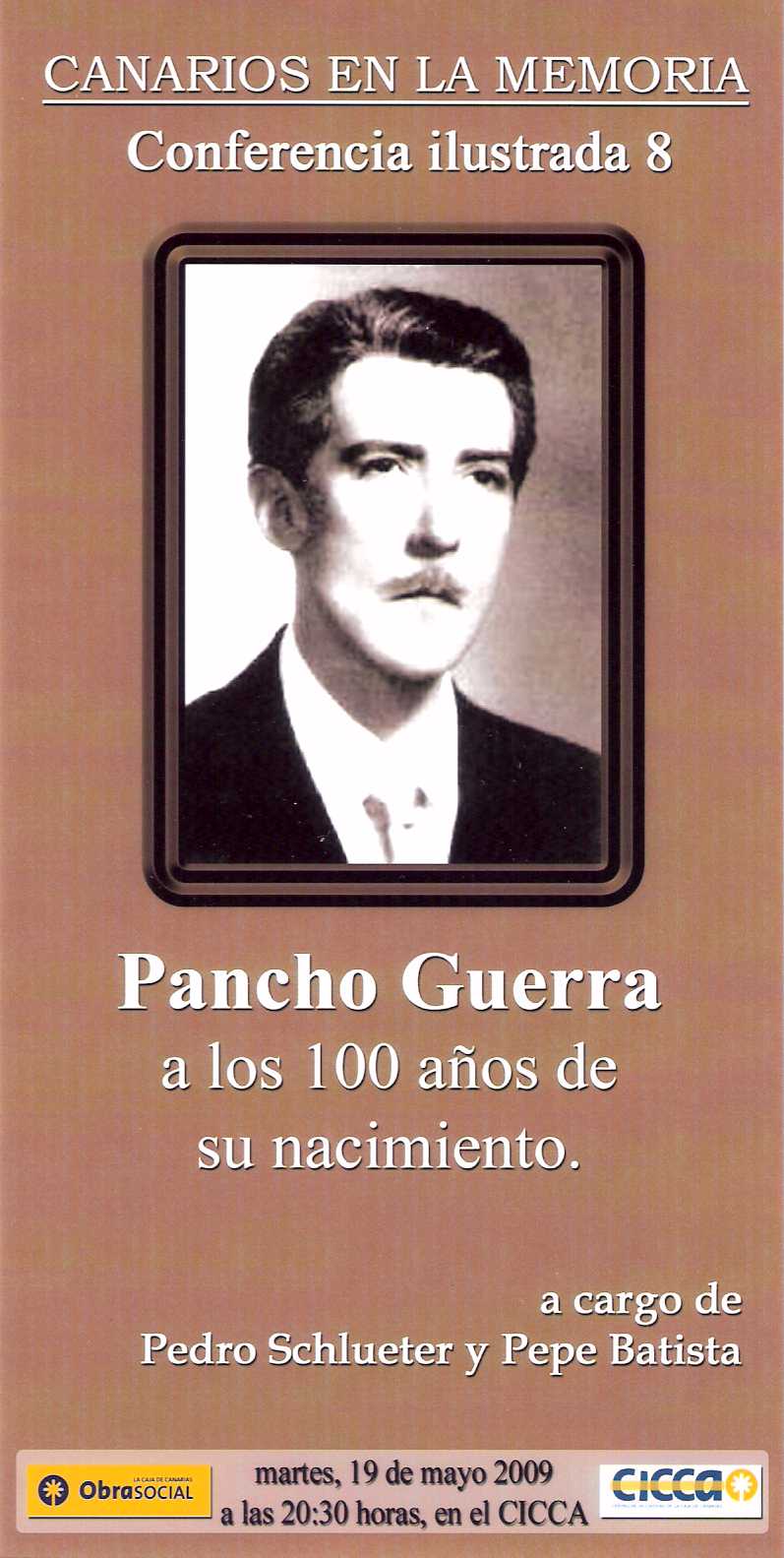 Conferencia ilustrada: "Pancho Guerra, a los 100 años de su nacimiento", a cargo de Pedro Schlueter y Pepe Batista.